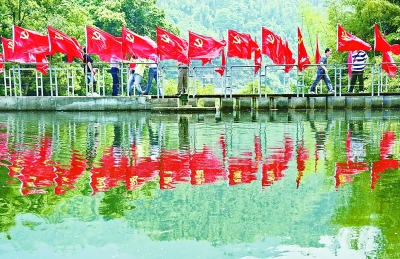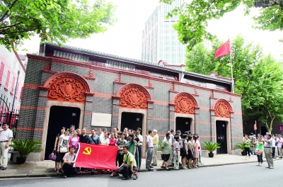红色,从这里出发 游客在上海中共一大会址前合影留念。新华社记者 刘颖摄