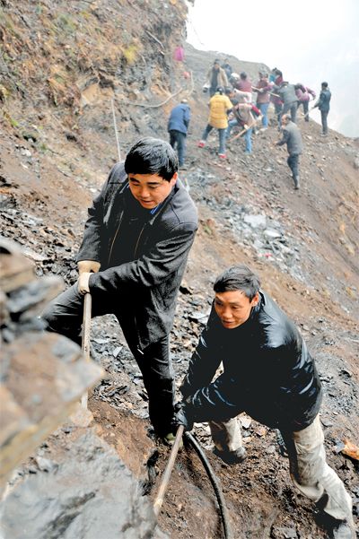 腊月初九,100多个村民打响了“移山”开路第一炮。
