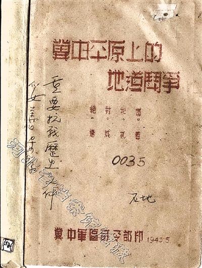 杨成武所著的《冀中平原上的地道斗争》。(影印文件由河北省档案馆提供)