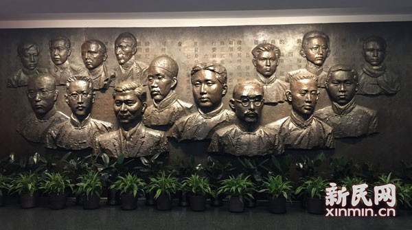 序厅以13位中共一大代表和2位共产国际代表的巨大半身浮雕为表现对象,以《中国共产党第一个纲领》内容作为背景衬托。新民晚报新民网 李若楠 摄