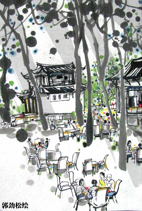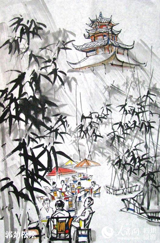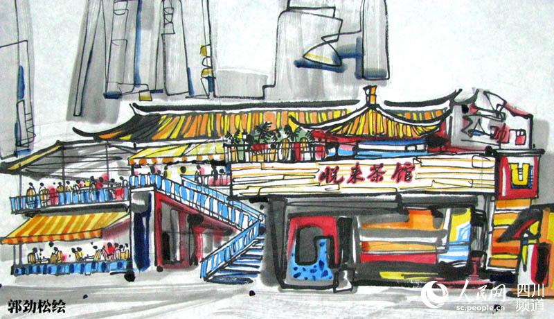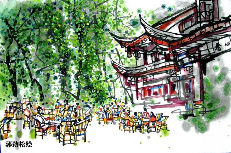 画家手绘成都十大茶馆 尽显休闲之都香浓茶文化