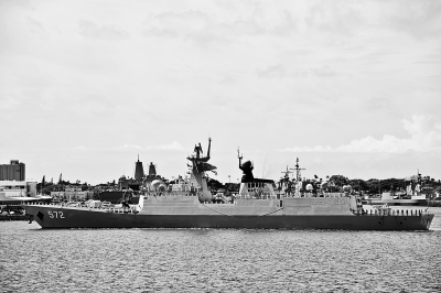 图为舷号为572的“衡水”号导弹护卫舰正在驶入夏威夷珍珠港码头。本报记者 韩显阳摄/光明图片