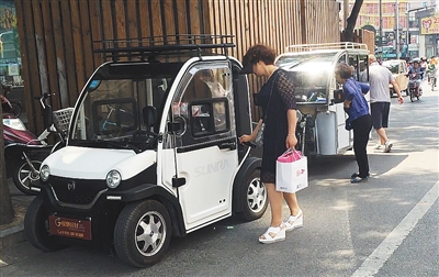 5月18日,崇文门新世界商场附近,一名女士正拿钥匙去开“老年代步车”。