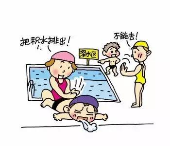 应对措施:万一发生溺水,首先清理呼吸道,即口腔和鼻腔异物。然后让溺水儿童俯卧,用手按压其背部,把肺、胃内的积水排出后做心肺复苏,及时送去医院抢救和治疗。