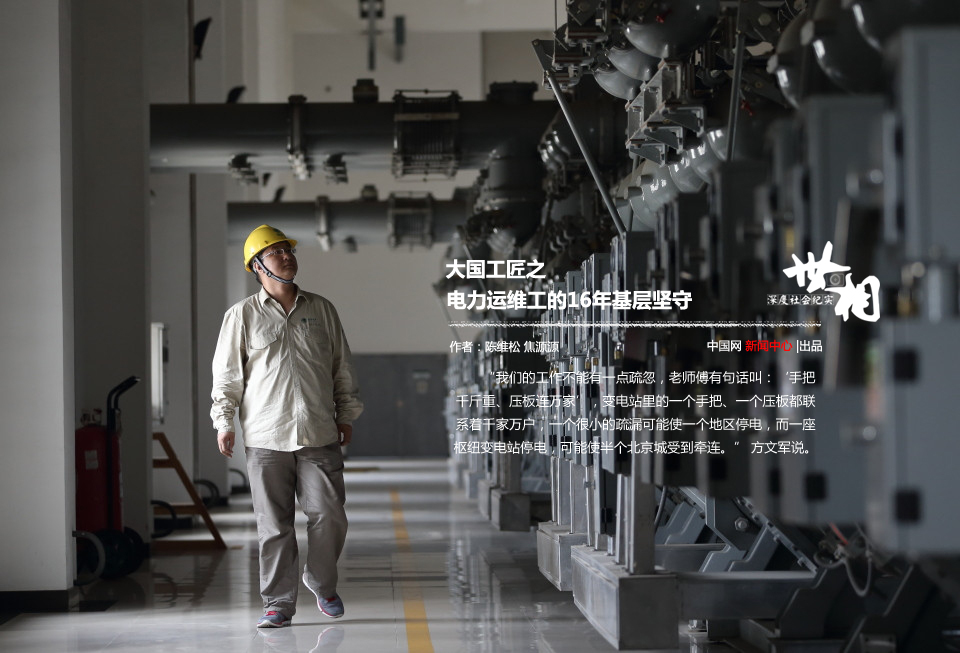 在这里,我们见到了本期《世相》主人公——方文军,国网北京市电力公司检修分公司吕村运维班副班长。2000年中专毕业后,方文军从一名普通变电站值班员到运维能手,扎根在这个不知名的小村落,在基层一干就是16年,用实践诠释了刻苦钻研、精益求精的“工匠精神”。
