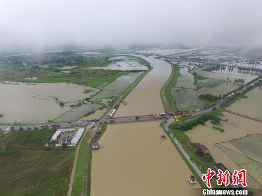 南京市溧水区二干河开泰圩、南圩汛情越发严重,水位达到12.59米,达到历史最高点。 郭亚楠 摄