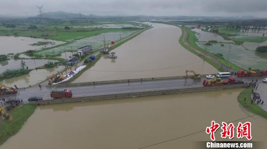 南京市溧水区雨水持续不断,秦淮河上游二干河上的开泰桥和石坝桥段,出现较严峻险情。 郭亚楠 摄