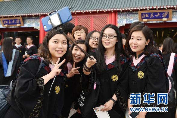 7月5日,几位北京大学毕业生在毕业典礼前自拍留念。当日,北京大学2016年本科生毕业典礼在北京大学邱德拔体育馆举行,共有三千多名本科毕业生参加毕业典礼和学位授予仪式。 新华社记者 鞠焕宗 摄