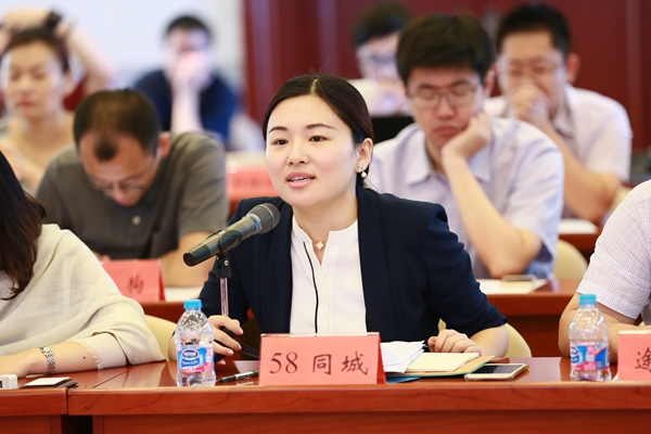 7月6日,国家网信办举办第二届全国网络诚信宣传日活动。图为座谈会上,58同城总裁助理马兰发言。(新华网 杨诺 摄)