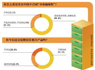 在北美热售的家具“马尔姆MALM”系列床头柜及橱柜因已压倒并致死6名儿童6月29日被宜家召回,但该系列产品中国仍然在售。宜家解释称,该系列衣柜符合中国国家标准,所以不召回。