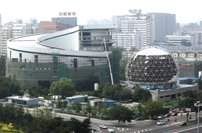 位于北三环中路的“圆球”地标性建筑中国科技馆老馆正在施工,这座几乎每个北京孩子都去过的科技馆,承载了不少人儿时的记忆。该馆一期工程于1988年9月22日建成开放。2009年6月30日,是中国科技馆老馆最后一天开放,当时媒体报道,当天早上5时许就有人在门口等候领票,当天客流量达8000人,而这个数字,是平时的10倍。