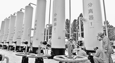 7月4日,河南省濮阳市,中国石化中原油田天然气产销厂员工在文23气田集气站进行井网管线流程改造。经过多年高效开发产量递减后,文23气田将向天然气储备转型建成文23储气库。该项目是中石化和河南省重点建设工程。
