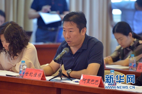 7月6日,由国家网信办主办的第二届全国网络诚信宣传日活动在北京举办。图为座谈会上,世纪佳缘副总裁孙鹏轩发言。(新华网 于耀东 摄)