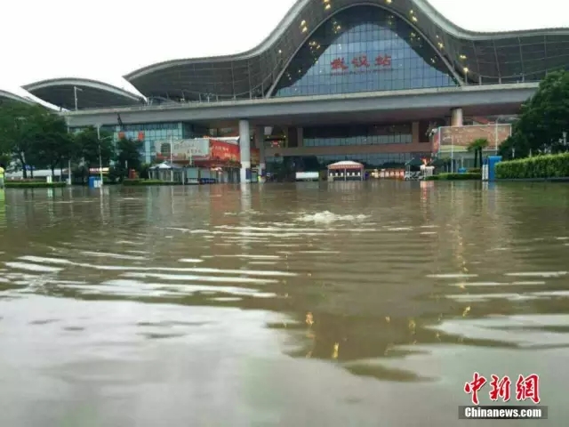而地铁之上的城市,也已成为泽国,武汉高铁站武汉站前一片汪洋。