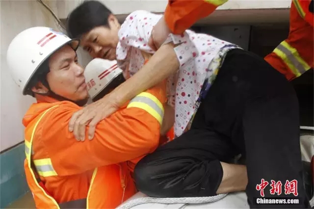 幼吾幼以及人之幼,老吾老以及人之老。在战士、警察的怀抱和肩膀上被救出来的,还有很多老人。