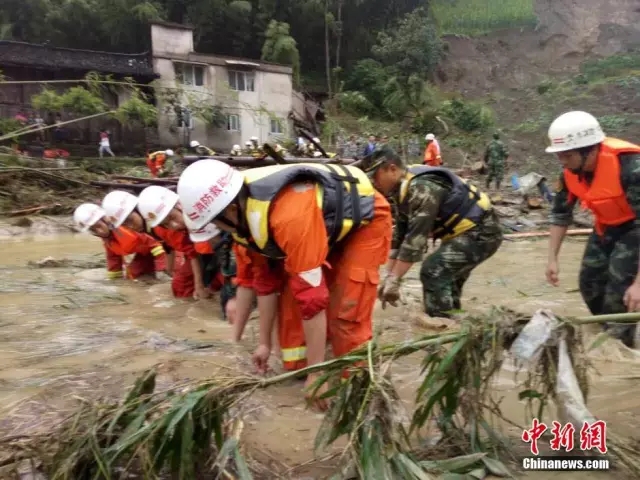 山体滑坡,村民失联,他们排成一对现场搜救。
