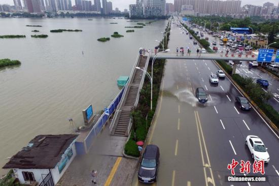 7月6日,受连续强降雨影响,武汉市区多路段渍水。从7月5日晚20时开始,武汉市普降大暴雨,局部特大暴雨,主城区14小时降雨229.1毫米。截至6日12时,武汉市有206处路段因渍水导致车辆无法通行,230条公交线路停运,部分地铁站点采取临时封闭措施。据武汉市防汛抗旱指挥部通报称,目前该市排水和调蓄设施已全力运行,但难以外排渍水,交通严重受阻,建议市民尽量减少出行,外出须做好相应准备,全市有条件的企事业单位可安排调休。周星亮 摄