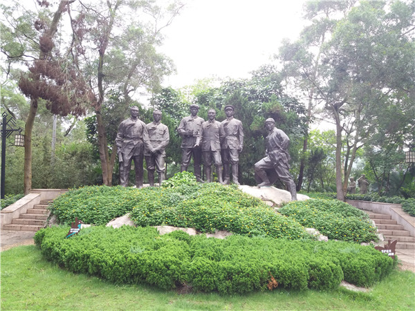 雕塑园位于百色起义纪念馆后山山顶,由“缅怀之门”“起义领导人”“百色风雷”“军民鱼水情”“著名英烈”“甘孟山勇士”“继往开来”七个部分组成。