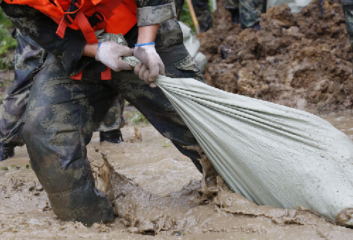暴雨,暴雨,还是暴雨。紧急清障,加高加固圩梗,留给战士们的时间并不多。清除圩梗杂草,及时排除管涌险情,装运沙袋,争分夺秒,在我们眼前抢险的武警战士们,你看不到他们的汗水,只能看到雨水也洗不去的满脸赤红,那是拼劲全力后留下的,比任何一种颜色都更美的色彩!