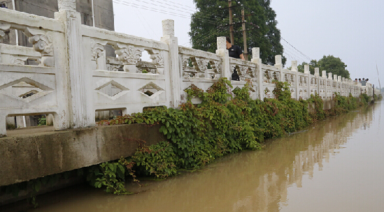 正经受洪水考验的,还有枞阳县老城区防洪墙。1987年修建,2010年加固,总长2100米。2016年7月7日,达到历史最高水位17.14米。