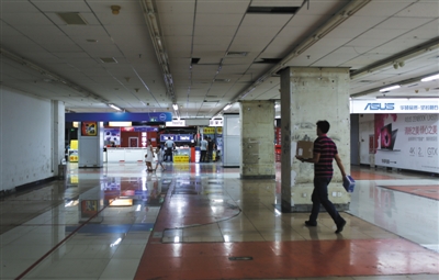 7月7日,海龙大厦三层,部分设施及店铺和柜台已经拆除一空。当日,有17年经营历史的北京中关村海龙电子城停止营业。本版摄影/新京报记者 浦峰