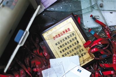 7月7日,海龙大厦一层,散落的各种店铺印迹。