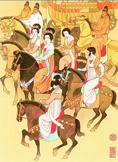 杨家地位飞升,市井里巷歌谣对此亦有反映。陈鸿《长恨歌传》中有记载:“生女勿悲酸,生男勿喜欢。”“男不封侯女作妃,看女却为门上楣。”这些歌谣,真实地反映了时人对杨家地位的企羡。白居易在《长恨歌》中对此进行了诗化的概括:“姊妹弟兄皆列土,可怜光彩生门户。遂令天下父母心,不重生男重生女。”不难看出,杨家富贵显赫,成为生女获得巨大利益的至高典范。榜样的力量是无穷的,许多人对此艳羡不已,企图复制杨家的成功,以至于改变了生育观念——更愿意生女儿。