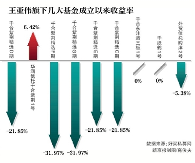 据Wind统计,王亚伟在2005年12月末至2012年5月初管理华夏大盘期间,累计取得了约12倍收益,业绩回报年化收益率为50%,在同类77只基金中排名第一,大幅超过基准回报10倍以上。优异的收益,也让王亚伟被业内称为“公募一哥”。