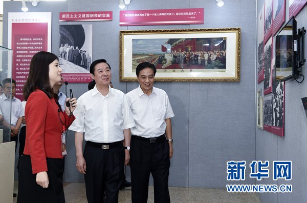 7月10日,中共中央政治局委员、中央书记处书记、中宣部部长刘奇葆在北京参观“旗帜——马克思主义中国化的光辉历程”主题展览。新华社记者 张领 摄