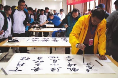 除了文艺演出,来自北京的8名书画家和当地藏族书法家一起,挥毫泼墨,进行笔会交流。