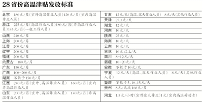 原标题:28省份公开高温津贴 最大差两倍