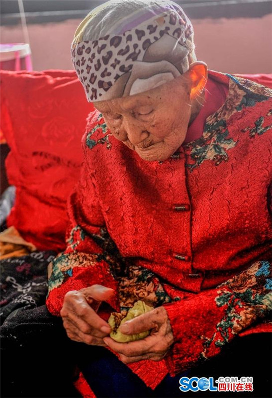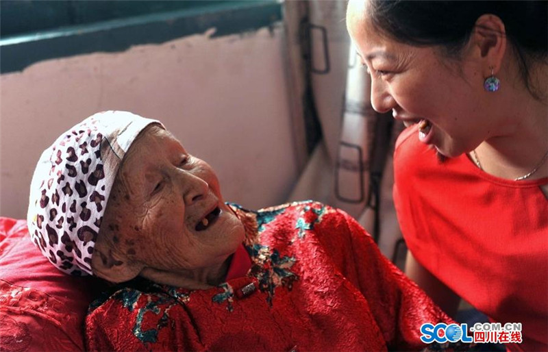 罗齐氏老人年轻时生有一女一儿,女儿很小时就去世,在她25岁时,丈夫也因病去世,她悲痛欲绝,含辛茹苦地将儿子带大成家立业,自己却余生再未嫁。如今,116岁的罗齐氏老人,是都江堰市最长寿的老人。因为上了年纪,腿脚不利索,她大部分时间都是坐着的,即便如此,身体还是不错的,头脑清晰、思维活跃,眼力和听力都还不错,对过去的往事记忆犹新。