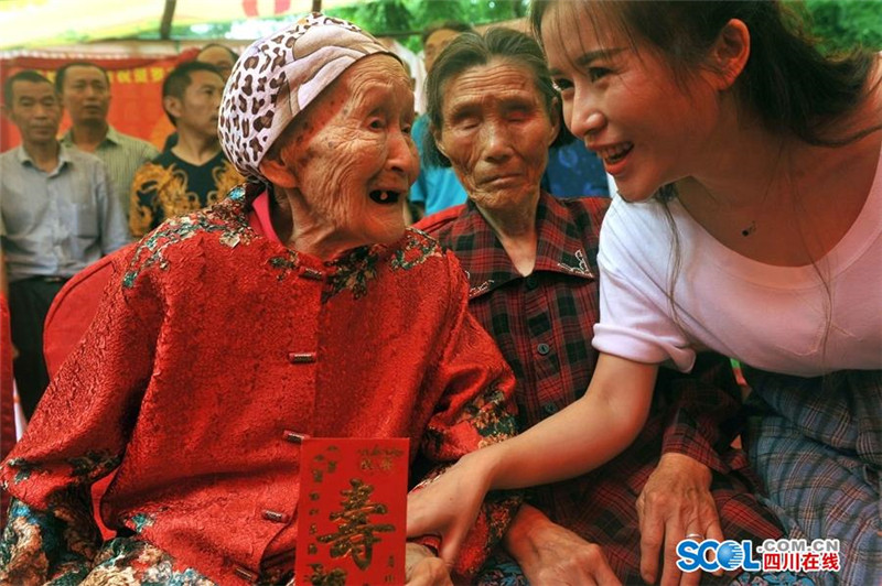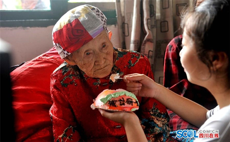 都江堰长寿老人迎来116岁生日 500多人前往贺寿