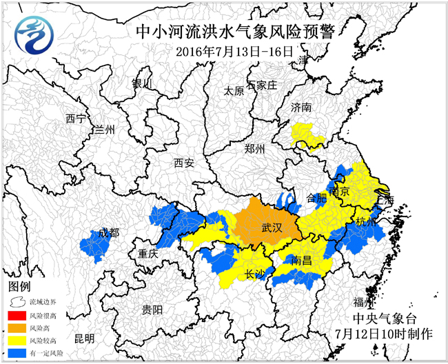 受强降雨影响,山东南部、湖北中南部、安徽南部、江苏中南部、湖南东北部、江西北部、浙江北部等地的部分地区发生中小河流洪水气象风险较高,湖北中东部局部地区发生中小河流洪水气象风险高;西藏东南部、云南西部、四川盆地西南部、湖北西南部和东部等地的部分地区发生山洪气象风险较高;陕西东部、四川南部和盆地西部、云南西部和北部、重庆东部、湖北西南部和东部、安徽南部等地的部分地区发生地质灾害气象风险较高,四川盆地西南部、湖北西南部局部地区发生地质灾害气象风险高。