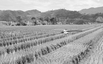 贵州省岑巩县是国家级杂交水稻制种基地县,当下正是水稻病虫草害防治关键期,图为近日注溪镇周坪村制种大户黄喜文用植保无人机为200亩水稻制种田喷洒农药。戚艳琴摄
