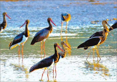 国家一级保护动物黑鹳,在保护区的数量稳定增长。