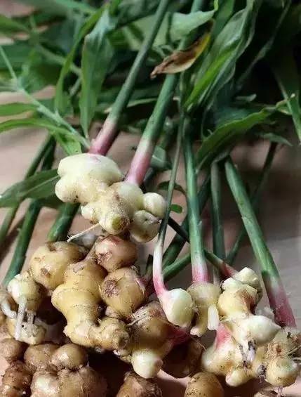 ▼生姜的花朵有紫红色的,也有粉色的,花苞状似松果。