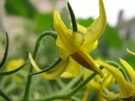 ▼西红柿果实火红火红的,开花时居然是鹅黄色的