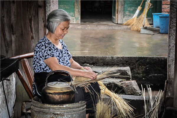 村民在编织斗笠