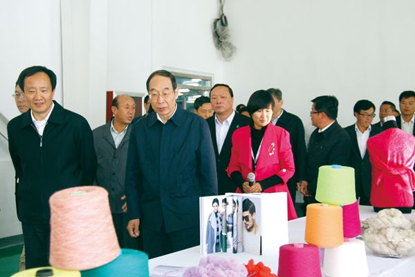 福建省党委书记尤权2013年来宁夏考察,和宁夏回族自治区党委书记李建华视察中银针织厂。