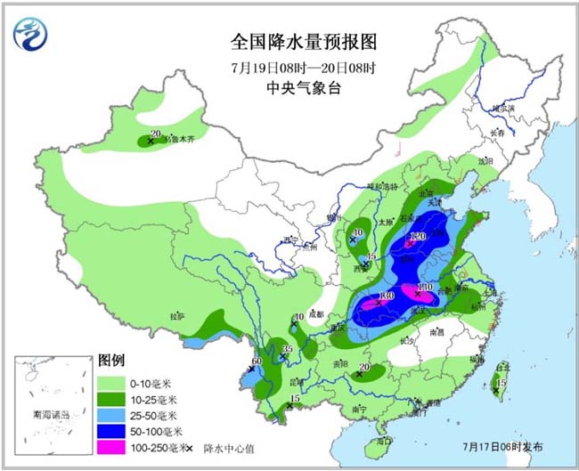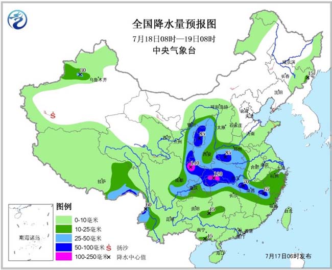 预计18-20日,降雨区将主要集中在长江以北的地区,四川盆地、西北地区东部、江汉、江淮、黄淮、华北东部等地将有大到暴雨,部分地区大暴雨,部分地区累计雨量有100~150毫米,局部可达200毫米或以上;上述地区局地并伴有短时强降水、雷暴大风或冰雹等强对流天气。