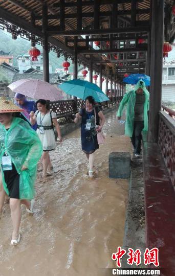 7月17日,湖南湘西古丈县默戎镇苗寨景区发生洪灾及山体滑坡,部分正在该景区游览的游客被困。