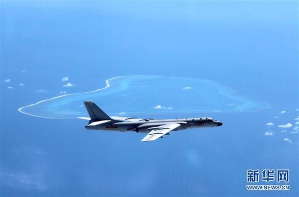 这是近日空军轰-6K飞机在黄岩岛等岛礁附近空域巡航。新华社发(刘锐 摄)