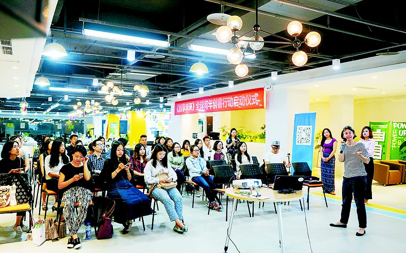 一名旅游行业的创业者在和年轻人分享创业经历。