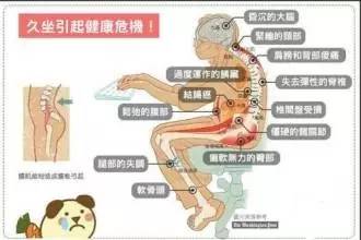因为久坐的危害不仅仅是伤脊椎而是对身体从头到脚的伤害!