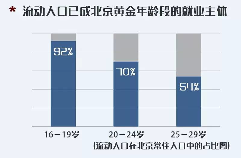 不管是哪一类城市常住人口,当下超大城市受限于资源与环境压力出台的人口疏解政策,都将继续在实践中寻找平衡点。北京市人口研究所副所长尹德挺指出,人口疏解不能伤害城市自身活力,忽视对部分行业劳动力的刚性需求。第六次人口普查数据显示,流动人口已成为北京黄金年龄段的就业主体,如在北京16-19岁、20-24岁、25-29岁的常住就业人口中,流动人口分别约占92%、70%和54%,部分行业对流动人口的刚需增强。