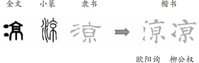 那么,为何会出现“两点水”和“三点水”两个凉字呢?只要探寻一下“凉”的字形演变便可知其原委。