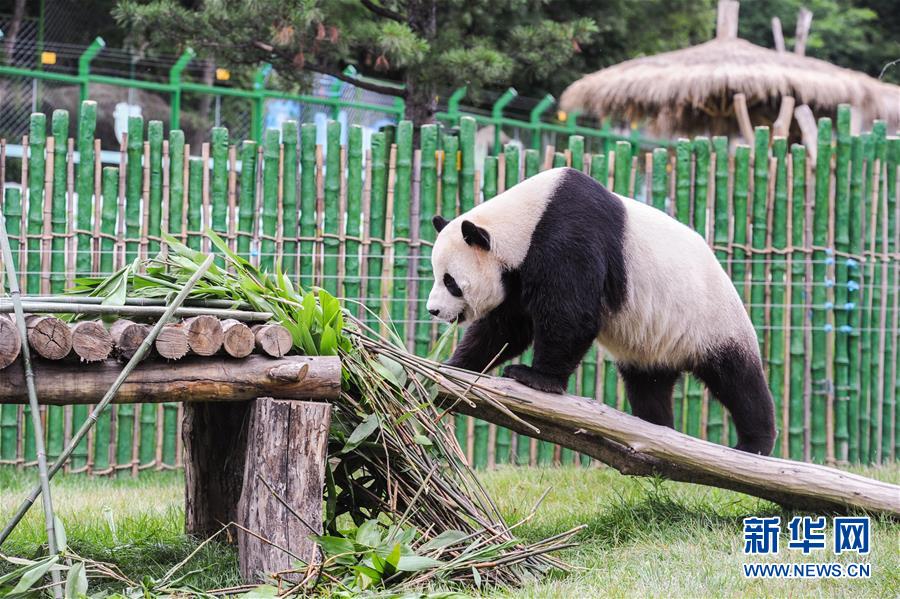 7月18日,大熊猫“佑佑”在中国亚布力熊猫馆玩耍。当日,经过十几天的适应期后,从四川迁居黑龙江中国亚布力熊猫馆的大熊猫“佑佑”与“思嘉”正式与公众见面。7月5日,名为“佑佑”和“思嘉”的两只大熊猫(一雄一雌、分别出生于2008年和2006年)被从四川接运到黑龙江,正式入住中国亚布力熊猫馆,两只大熊猫目前身体健康状况良好。新华社记者 王松 摄