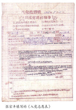 图1:张宗丰填写的《入党志愿表》 来源:《红色珍藏》