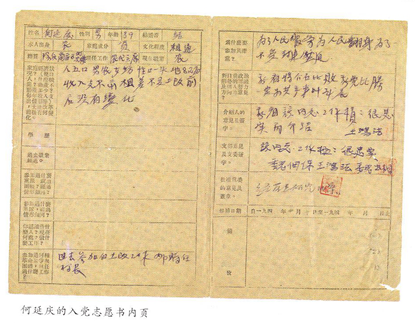 图2、图3:何延庆填写的《入党志愿书》 来源:《红色珍藏》